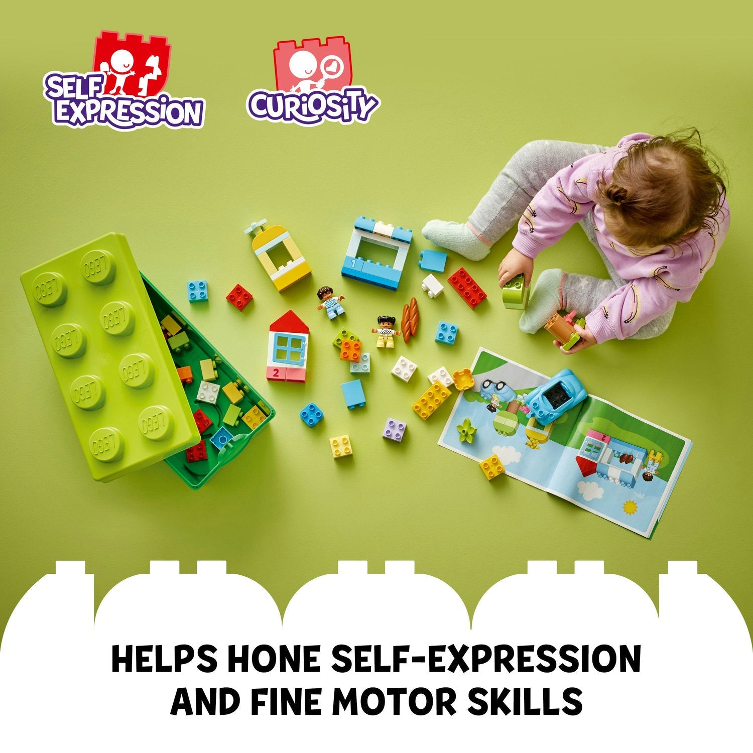 - As they create and play with the toddler-friendly mix of LEGO® DUPLO® bricks and pieces, your little builder will develop creative thinking and problem-solving abilities, visual-spatial awareness and fine motor skills.