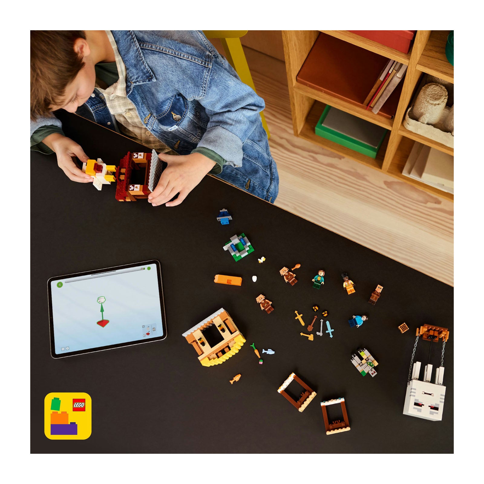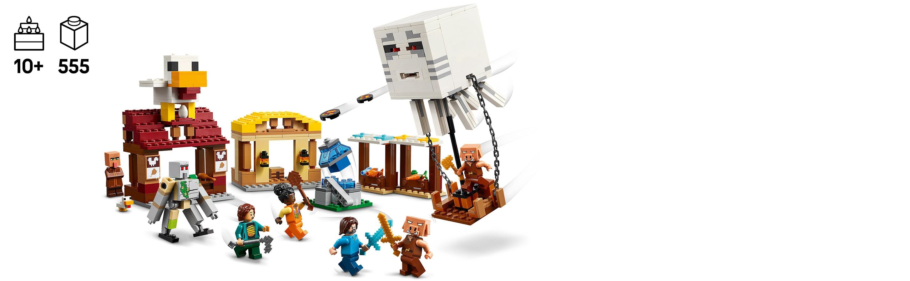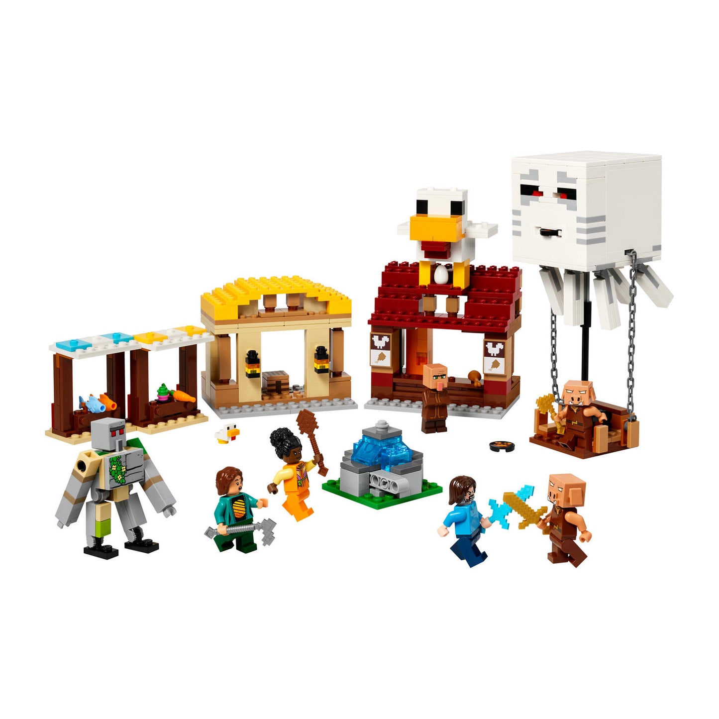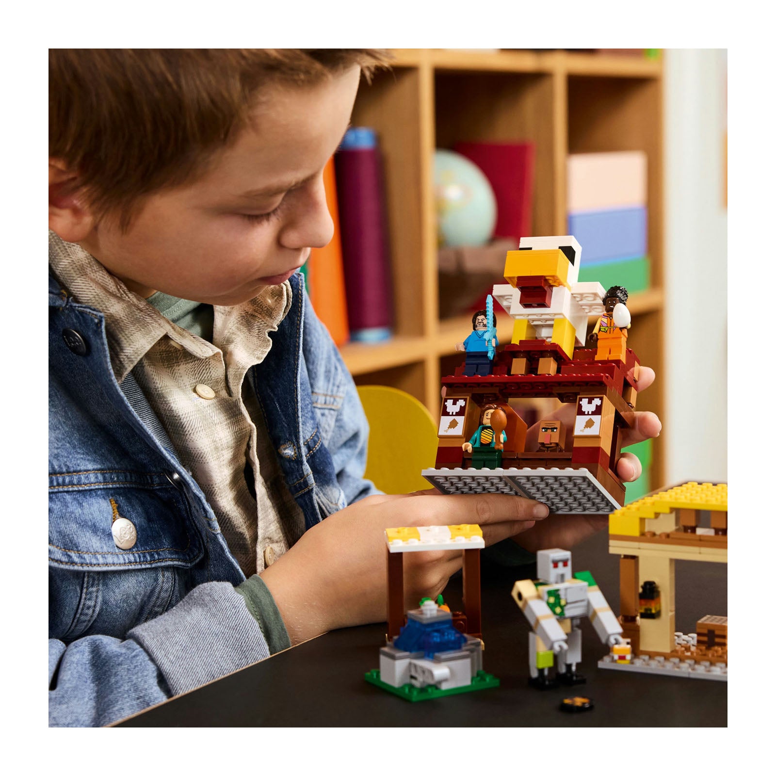 - Video game LEGO set – When piglins launch missiles from their ghast balloon, causing the fountain to ‘explode’, kids must defend the villagers and Steve's fried chicken restaurant and crafting shack
