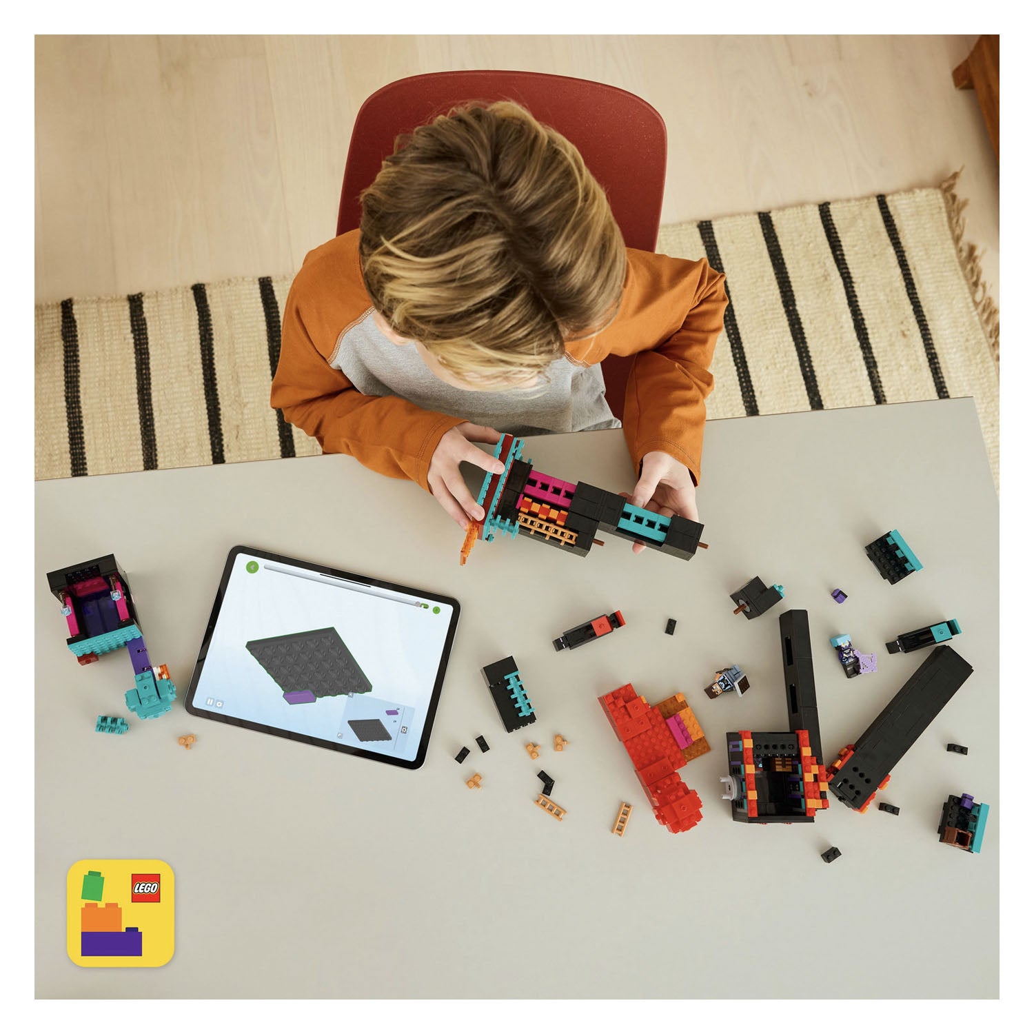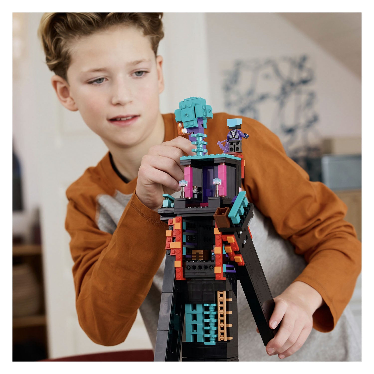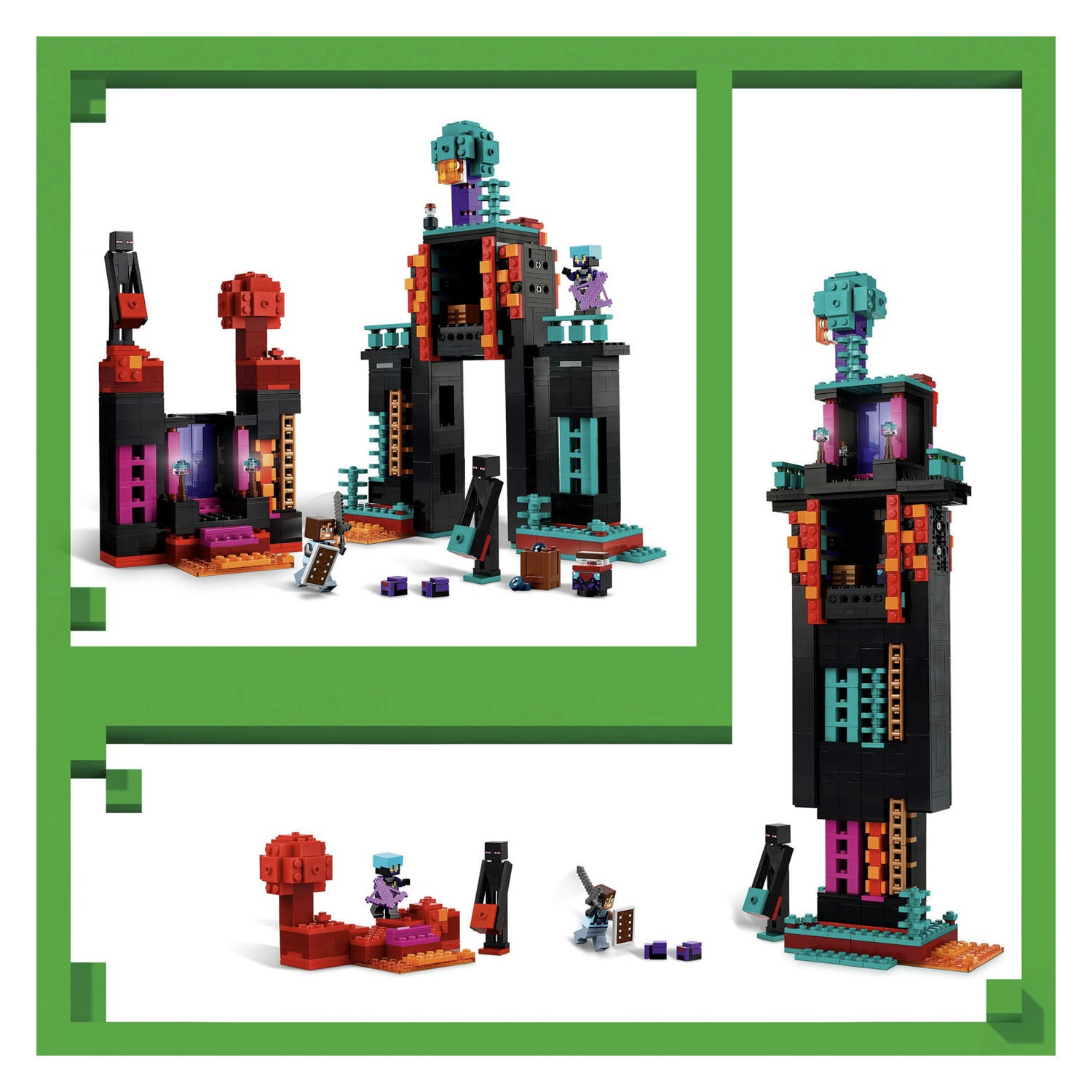 Build and explore your own mega Enderman tower. Its movable arms and modular design let you create, play and display in epic Minecraft® style! Add LEGO® Minecraft characters, terrain from the warped and crimson forests, treasure and weapons. Next, rebuild the tower into an Enderman fortress! Enter the action-packed rooms and the Nether portal to step into endless new adventures!