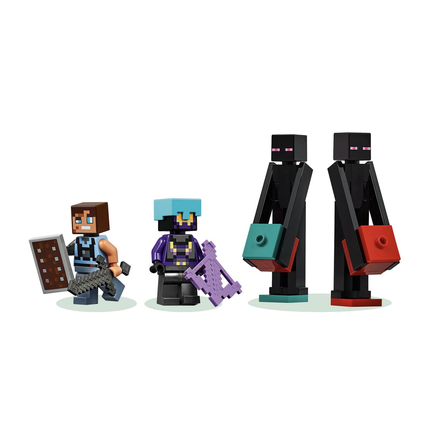 Collectible video game figures – The set features a Dimensional Defender, a Realm Raider, 2 Enderman minifigures and 2 Endermite mob figures, and an enchanted crossbow and a netherite sword and shield