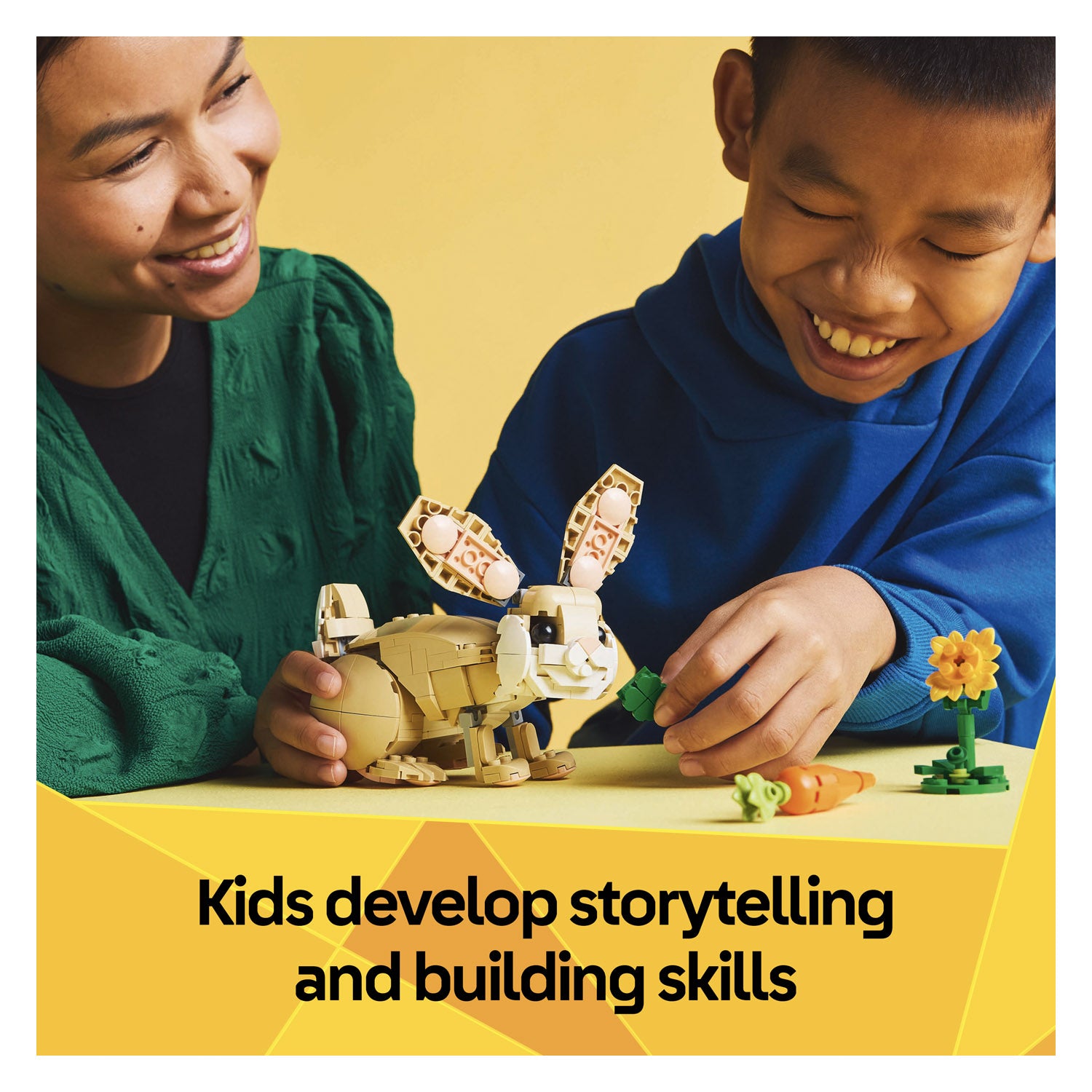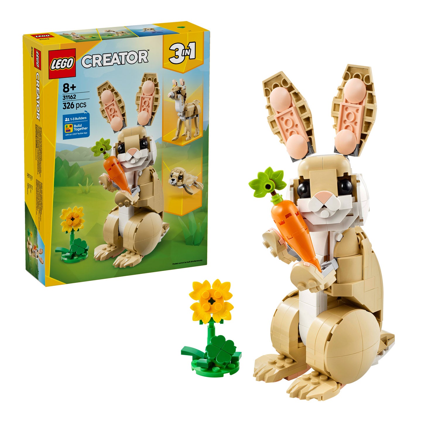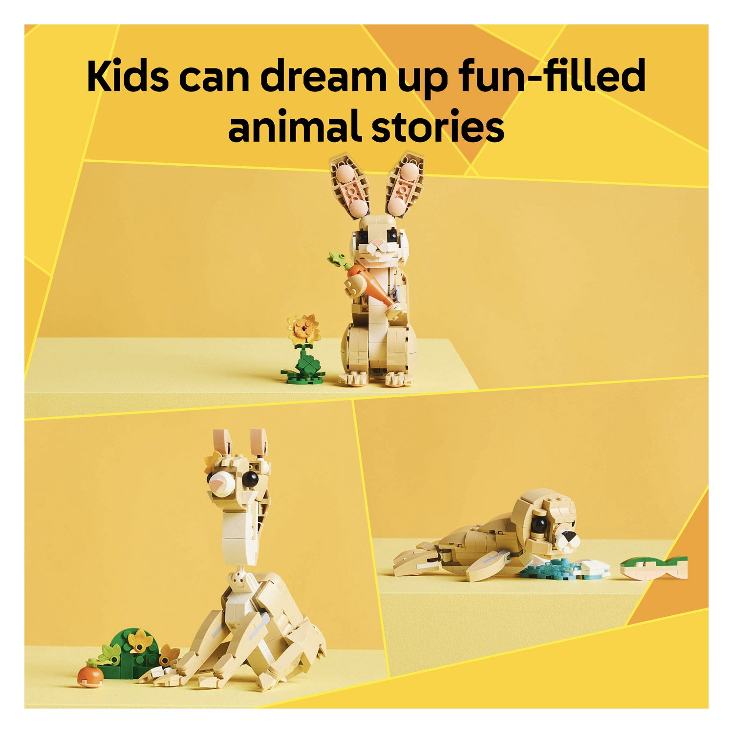 - 3 rebuildable animal playsets for kids in 1 box ? LEGO? Creator Cute Bunny lets girls and boys aged 8 and over build and rebuild 3 different animal figures using the same bricks