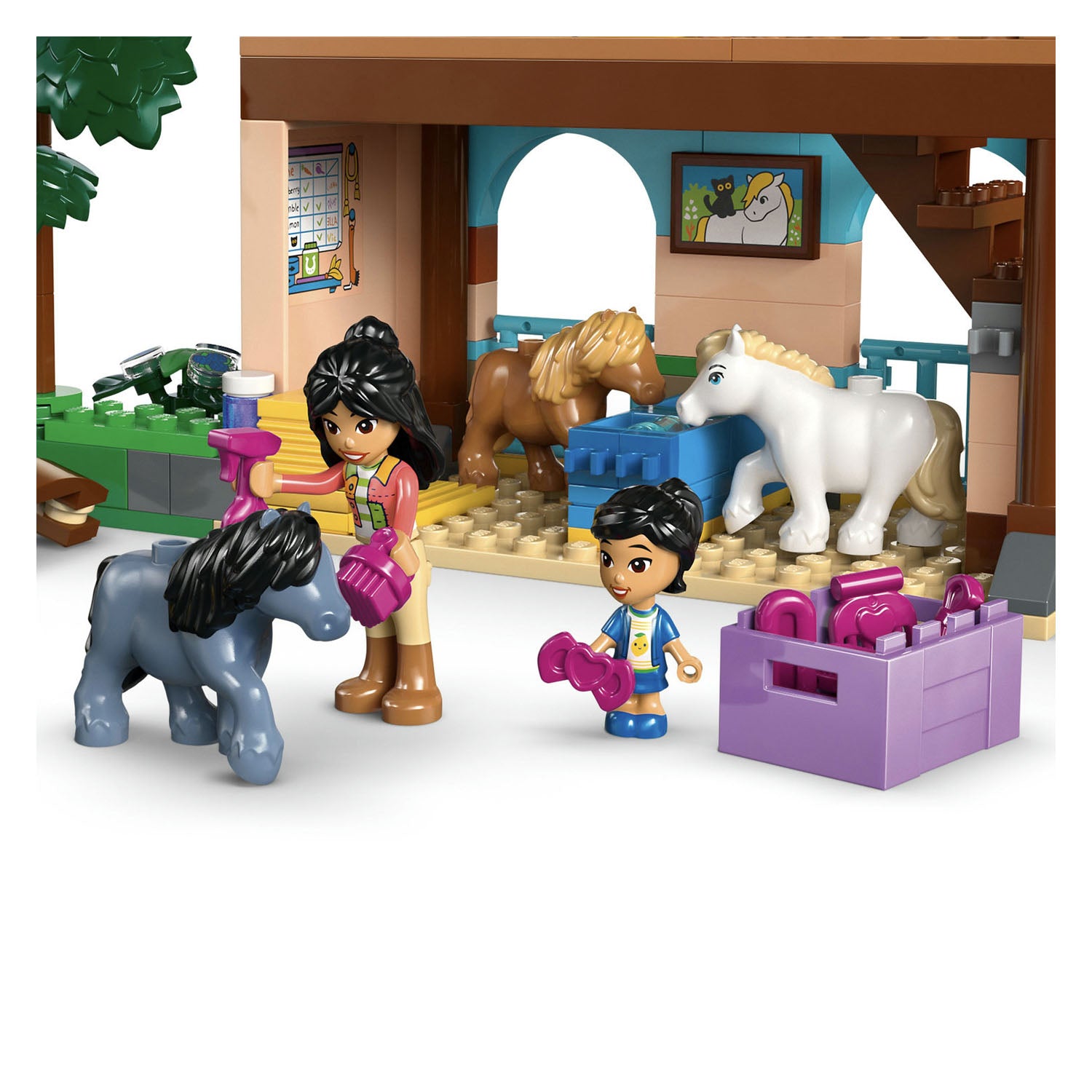 Saddle up for fun times with Aliya, Liann, Victoria and Ella as they hang out at Heartlake City’s Pony Ranch & Stable. The friends love grooming and feeding the 3 ponies. Moving the hay bales is lots of fun when you use the hay elevator. Pluto the kitten loves to ride on it too! After a busy day, the friends relax inside then head to the cozy hayloft to sleep above the ponies.