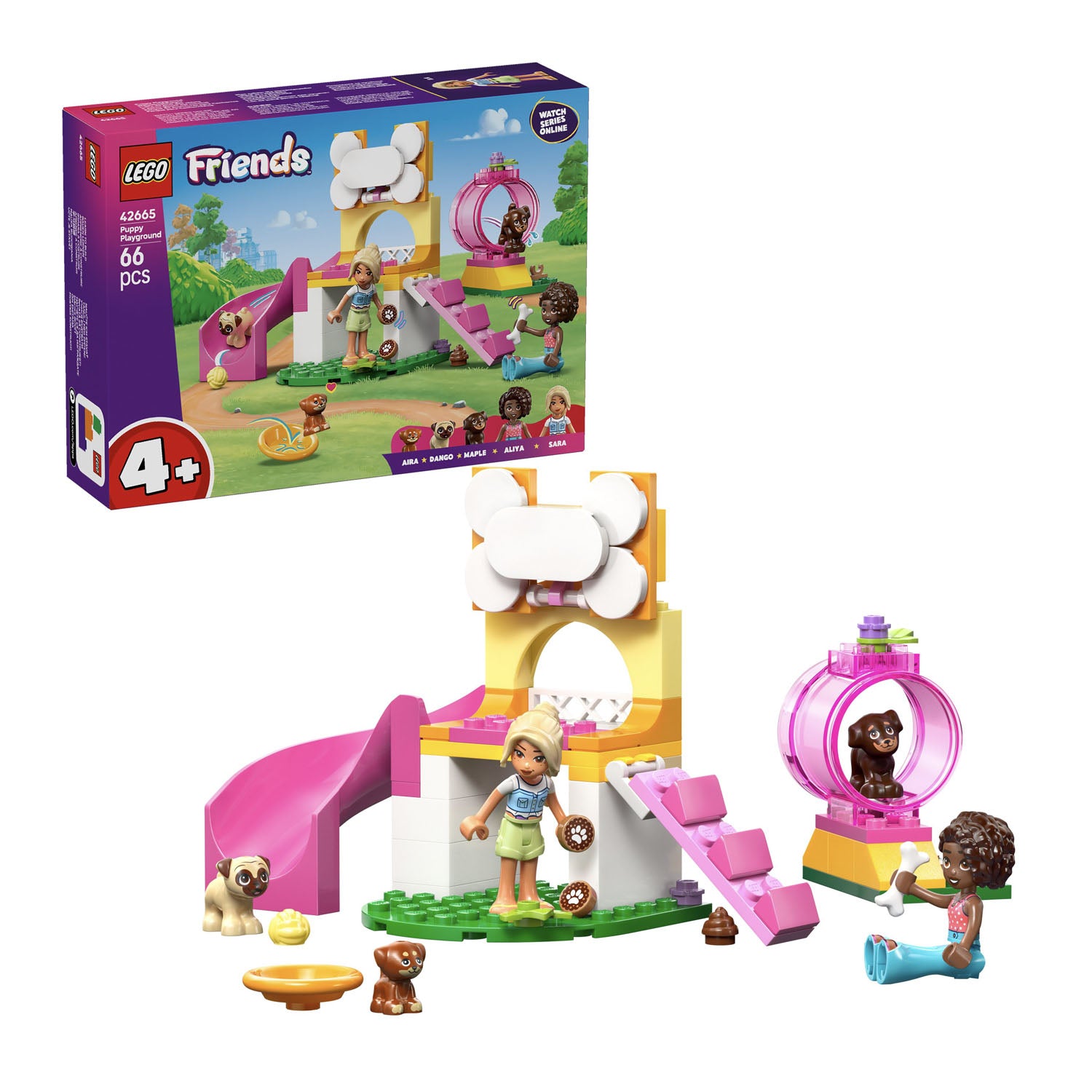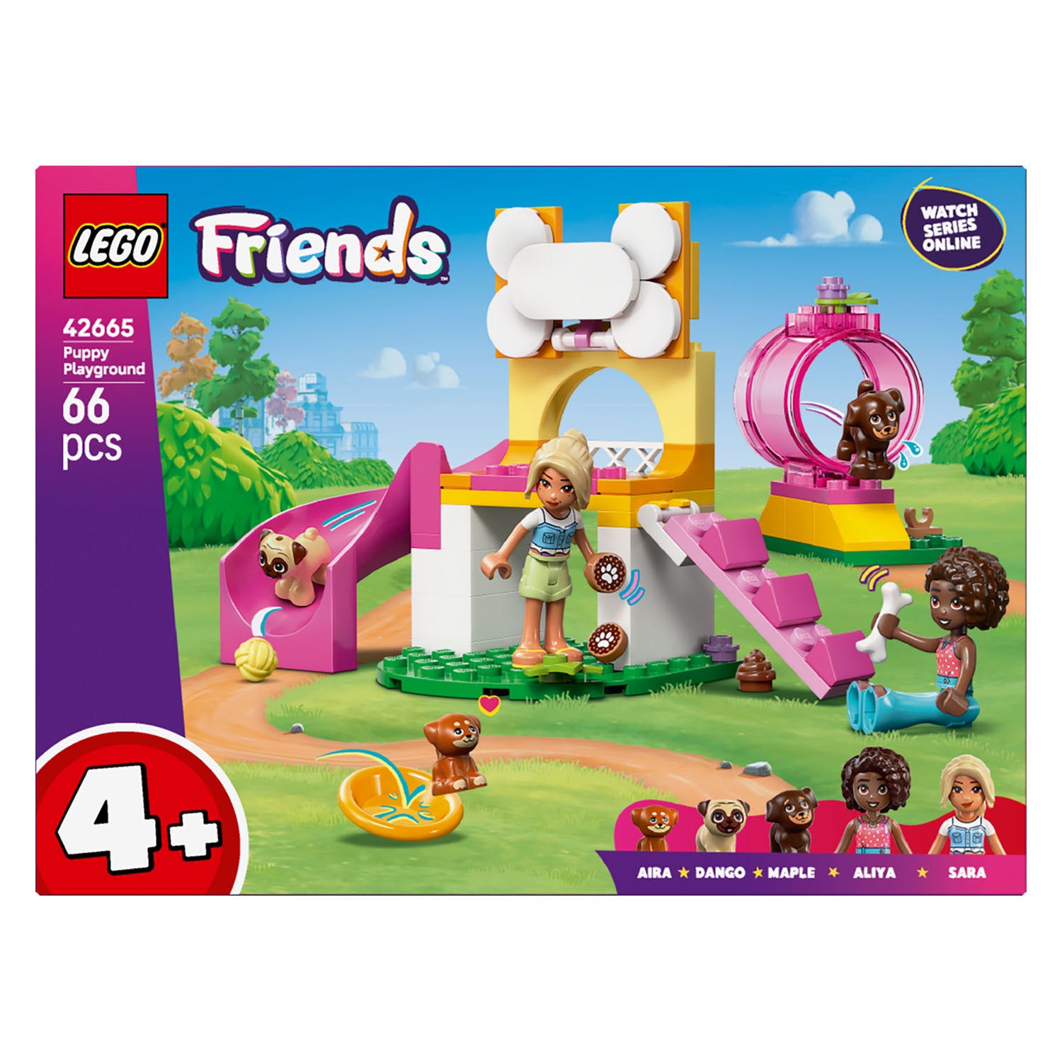 Building kit packed with puppy power – This kids’ LEGO® Friends Puppy Playground for girls and boys aged 4 and up features a buildable playground, 2 minidolls, 3 dog figures and accessories
