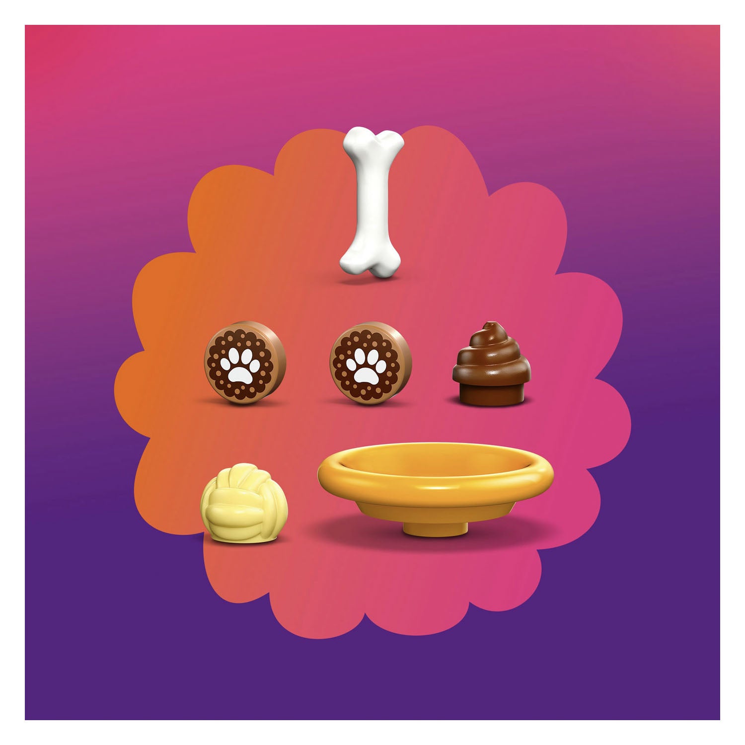 Dog toy accessories – This pretend-play set comes with fun accessories for imaginative play, including a ball, dog biscuits and a bone, plus a dog poop element to make kids laugh