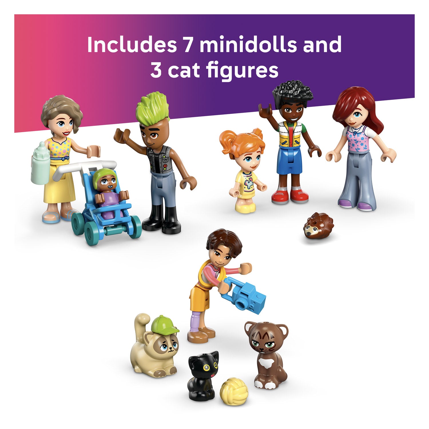 - Includes 9 LEGO? Friends characters ? This set comes with 7 minidolls, a micro-doll, a baby figure and 3 cat figures, plus lots of accessories for creative role play