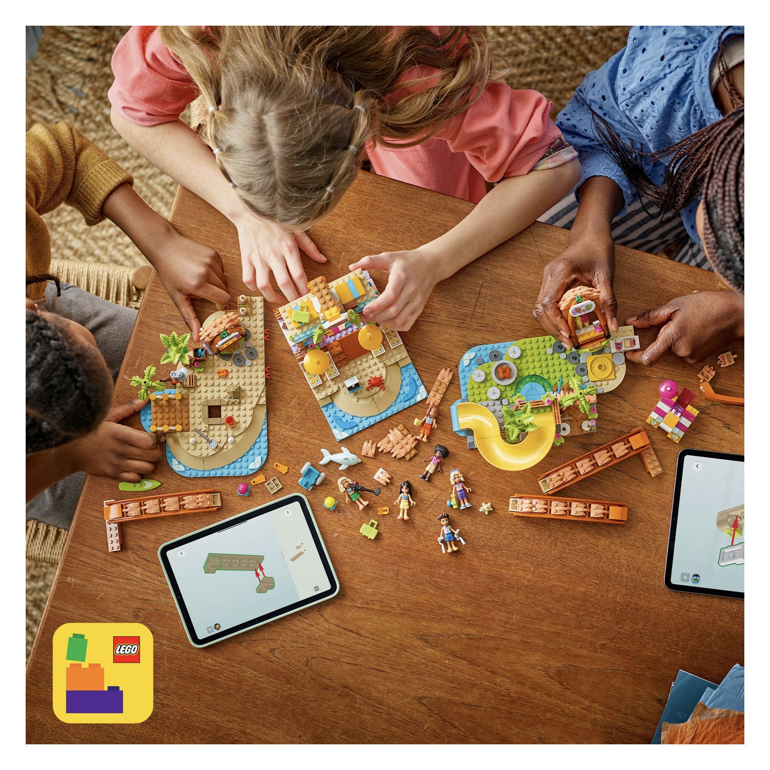 Make memories with your favorite crew at the beach resort. Build the fun-filled resort for Nova to explore with her friends and family. It’s packed with beach activities and watersports. Discover a paddleboat, slide, ice cream stand, pool, firepit and more. Remember to look out for the turtle and dolphin! With the LEGO® Builder app, you can have fun building with your own friends and family.