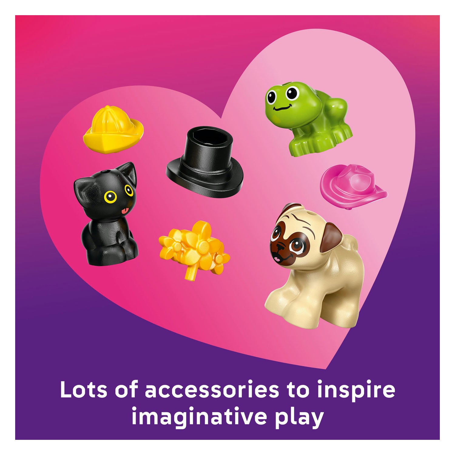 The LEGO® Friends Pet Accessories Van is on its way! Help the kitten, dog and frog find the perfect accessory. See the van’s adorable pug design with a wagging tail. Open the van to reveal the accessories and create a fun display, then put on a pet fashion show!
