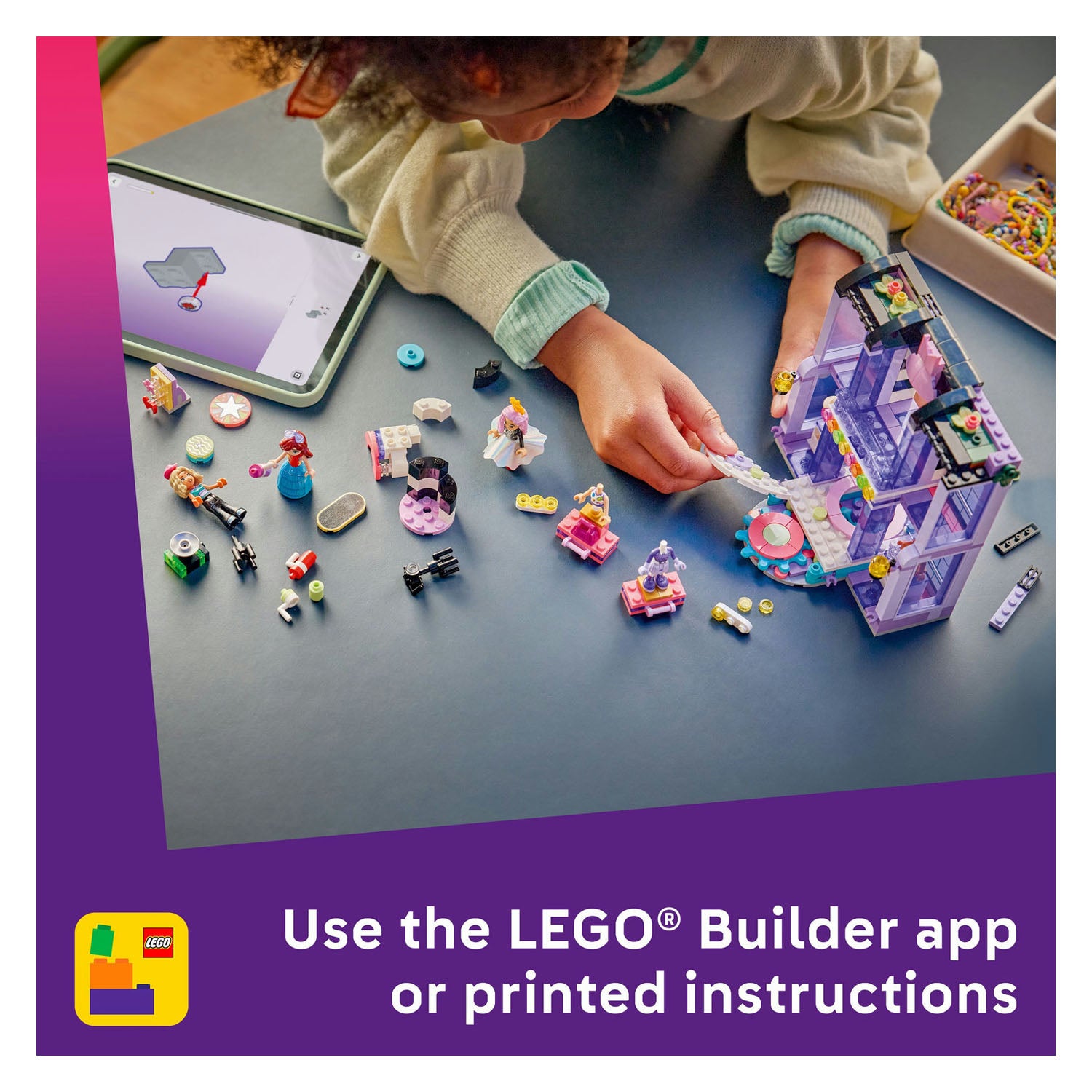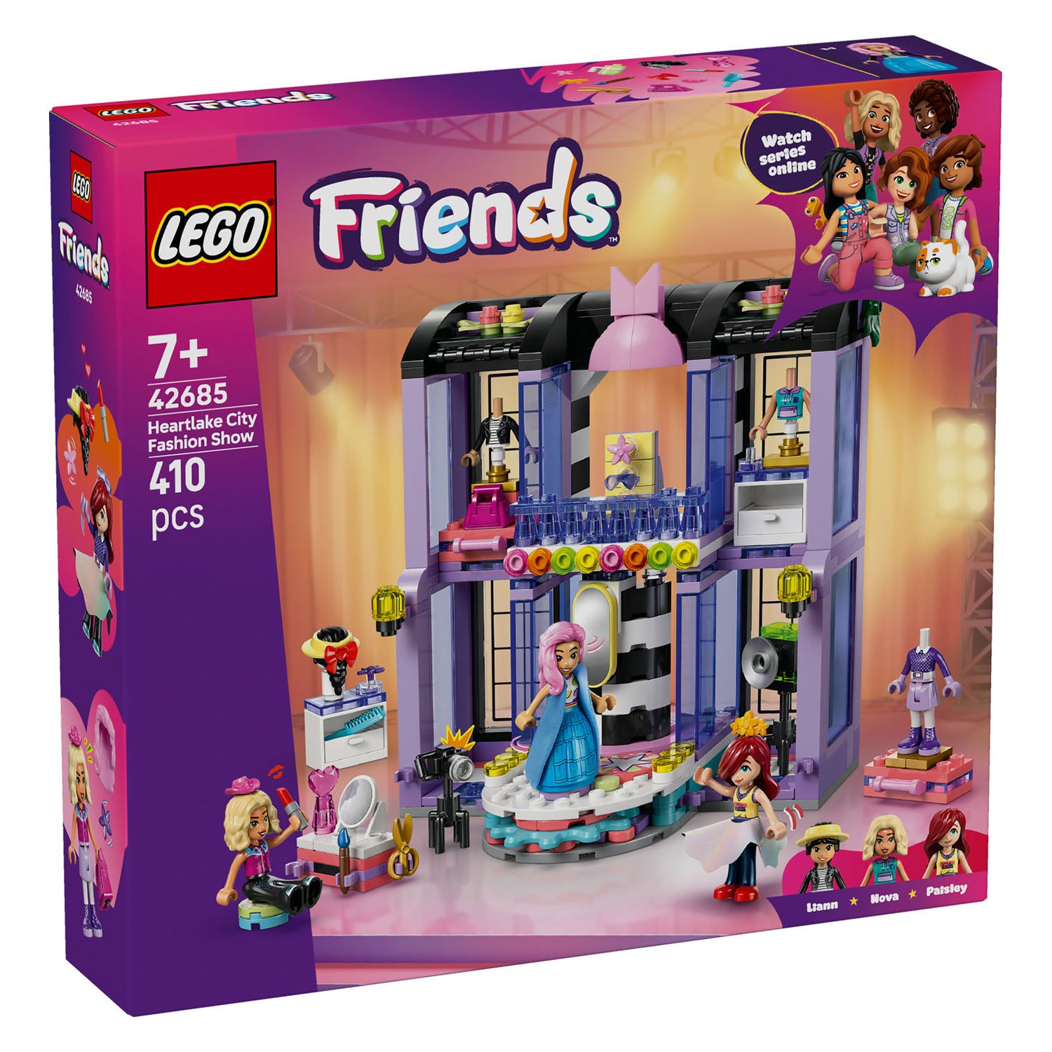 Get ready to sparkle at the LEGO® Friends Heartlake City Fashion Show. Help Liann, Nova and Paisley pick their outfits. Will they choose jeans, a skirt or a cool jacket? Add the finishing touches with accessories, wigs or a hat. The friends take turns on the spinning platform to reveal their new styles. Then it’s time to check the vanity mirror before the friends strut their stuff on the runway.