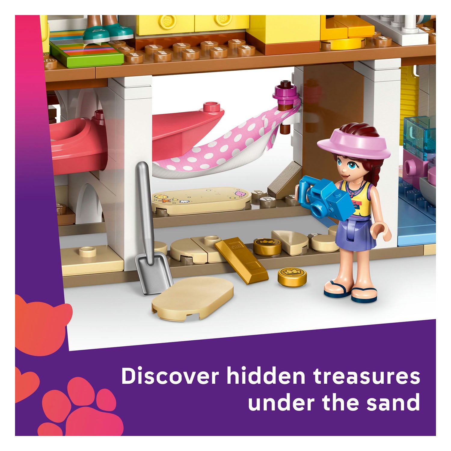 Ready for a fun vacation? Join Leo, Liann and Paisley as they go seal spotting at the beach house. The house is packed with cozy details. The friends can make a smoothie in the kitchen, relax in the sleeping area or hang out in the hammock. They love trying out the kayak and surfboard too. On the beach, they find the friendly seals Finn and Shelly and hunt for the hidden treasures.