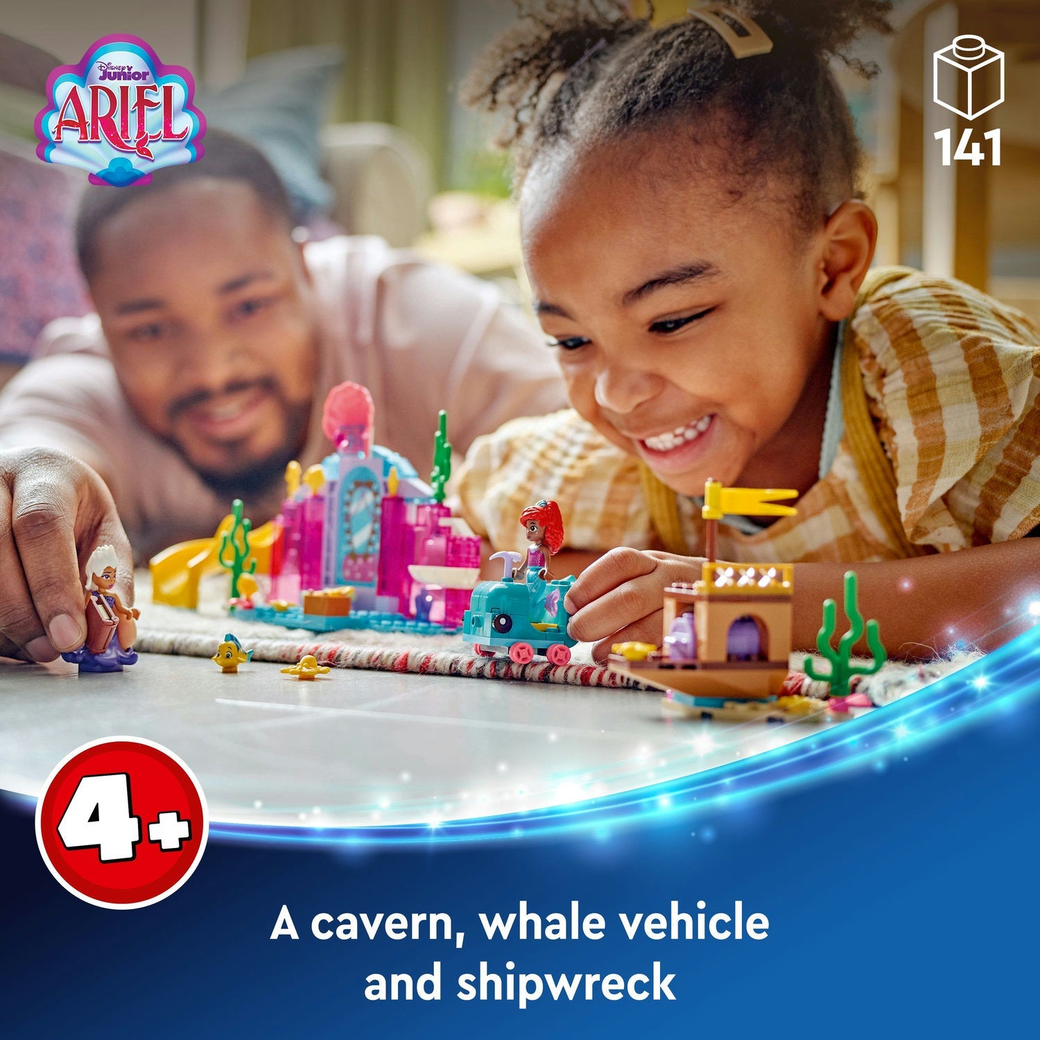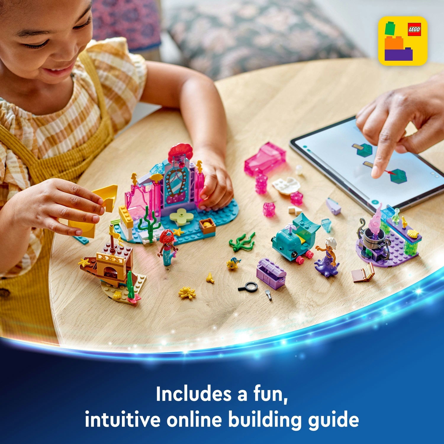 Exploration and play awaits kids aged 4+ as they learn to build with this LEGO?? ? Disney Princess Ariel's Crystal Cavern (43254) building toy. This buildable mermaid playset gift helps boost kids' problem-solving skills with creative play. Inside is a cavern with a spinning platform and slide, a whale vehicle, a shipwreck with a treasure chest and a cauldron. It also includes Ursula and Ariel LEGO Disney mini-doll figures and a Flounder LEGO Disney fish figure. The building kit includes a Starter Brick element to get building underway quickly, and instructions are provided in a colorful picture-story guide for kids who are just starting to learn how to read. This 4+ LEGO building set for kids is easy to take on playdates and is a great way for adults to share in the building fun with youngsters. The construction kit also works well with other compatible LEGO 4+ building sets and LEGO Disney buildable playsets (sold separately) in the range.