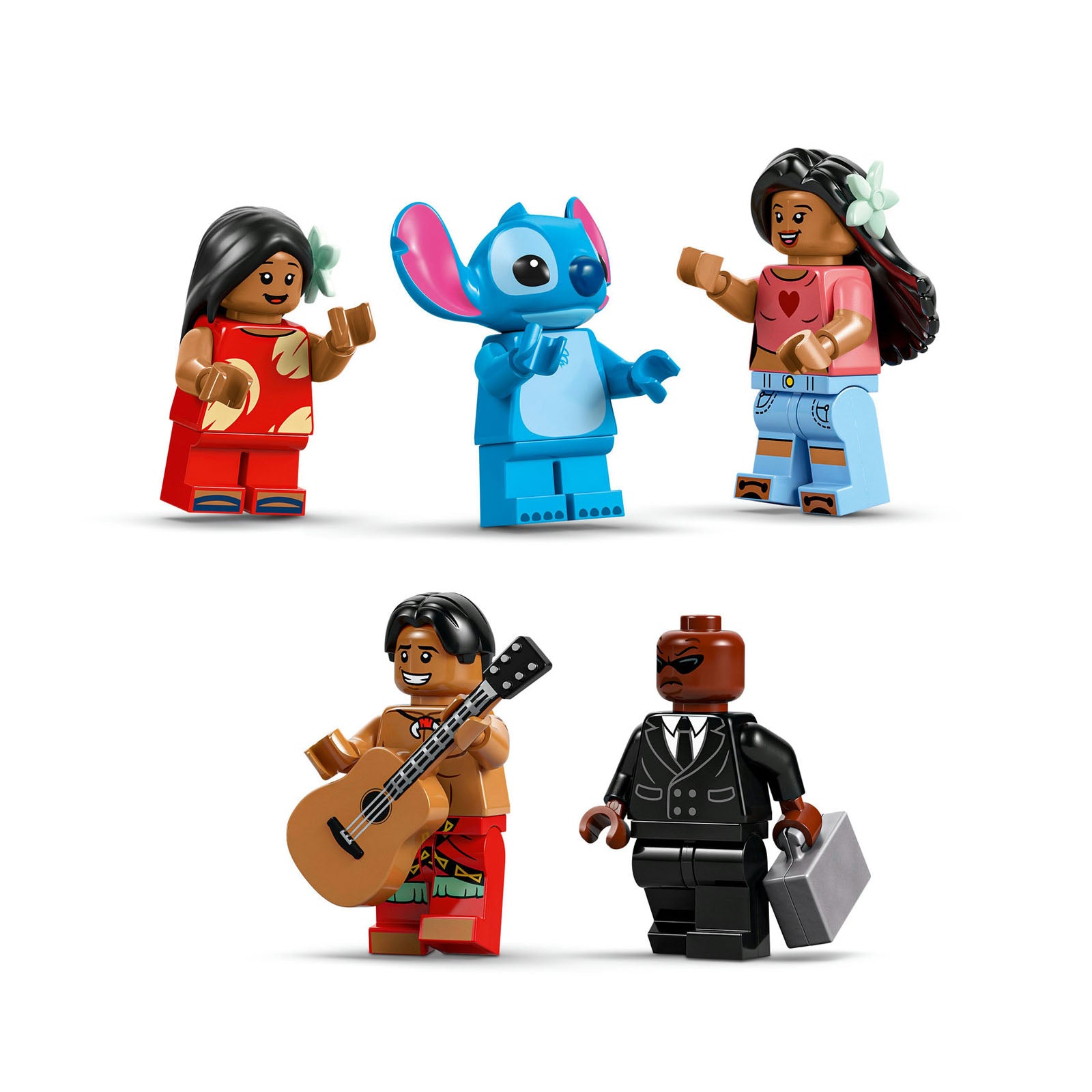 - Buildable playset – Features a buildable house with 6 rooms and a rooftop observatory for the spaceship, plus LEGO Disney minifigures of Lilo, Stitch, Nani, David and Mr. Bubbles
