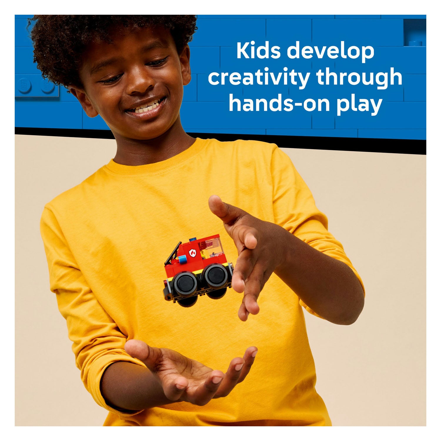 Yikes … fire! There’s an emergency in the center of the city. Mobilize the ultracool LEGO® City Rides – Fire Truck and head to the scene. This compact vehicle, with chunky road-gripping tires and a raisable ladder, is perfect for high-speed rescue missions in hard-to-reach places. Race through the narrow city streets and alleys to save the day. Thrilling firefighting action awaits in LEGO City.