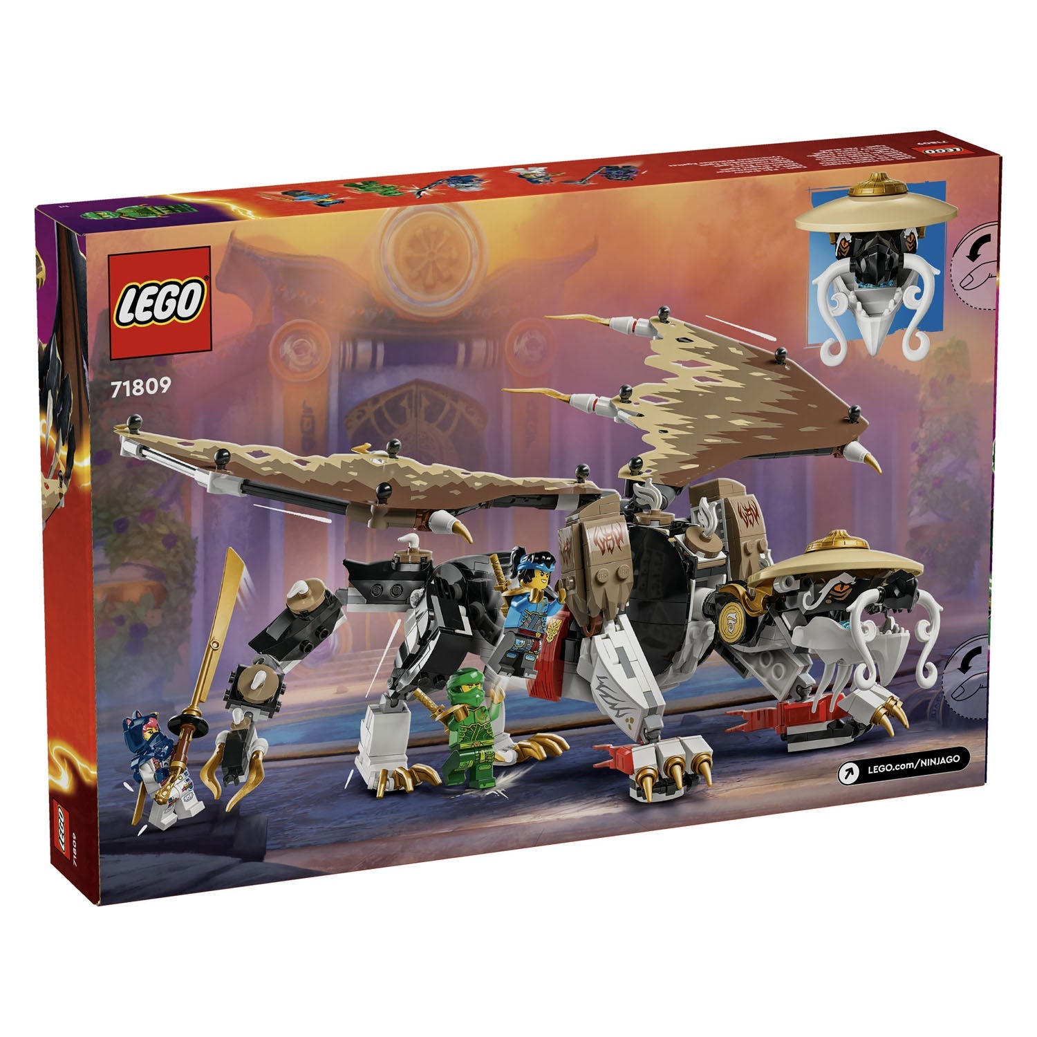 Kids aged 8+ can recreate thrilling adventures from season 2 of the NINJAGO® Dragons Rising TV show with this large Egalt the Master Dragon (71809) hero toy playset. This is the first-ever Master Dragon toy in the NINJAGO range and features posable legs, tail, head and foil wings, its own sword accessory, and a holder for katana accessories on its back.