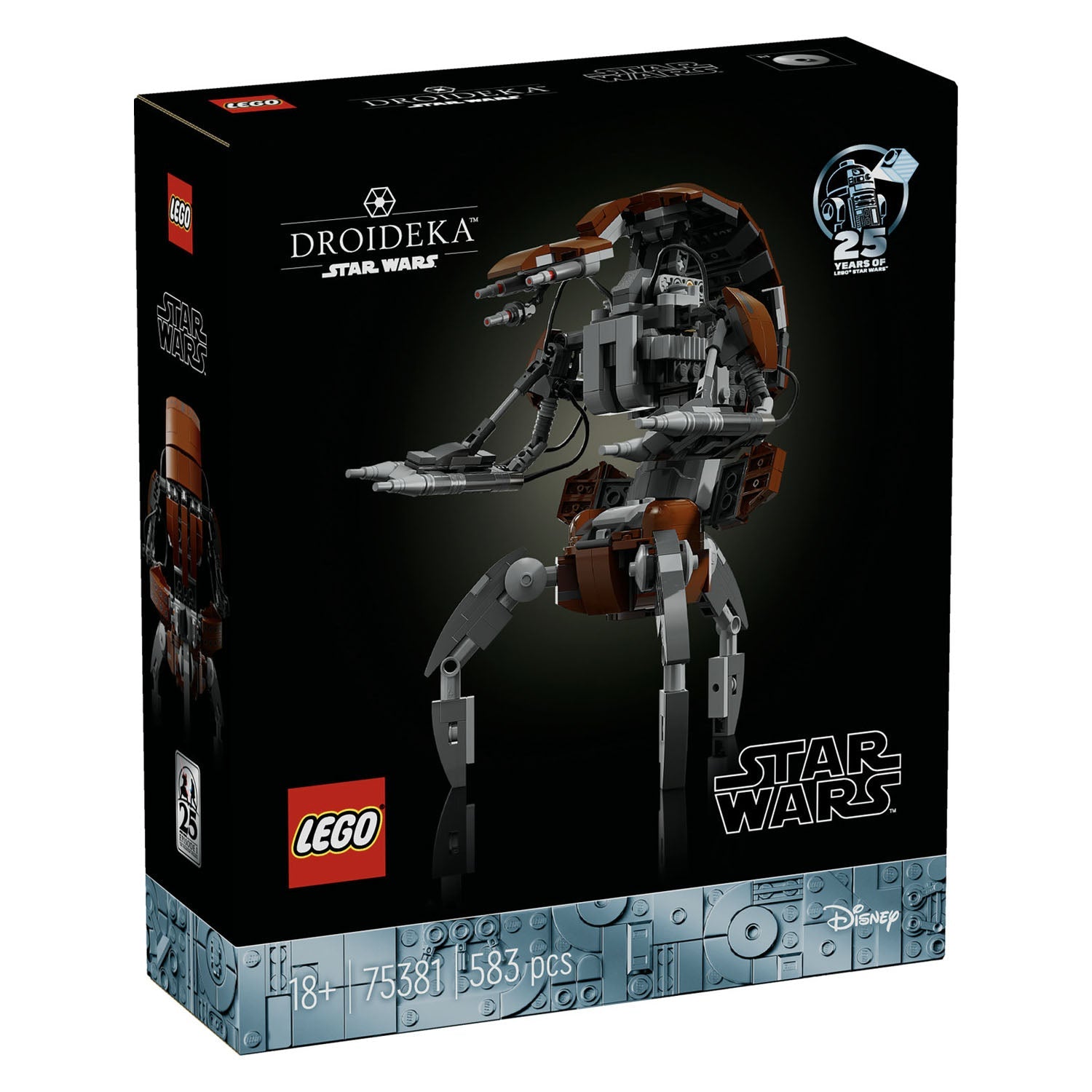 To complete a striking centerpiece, this creative building set also has a stand with an information plaque, a LEGO Star Wars 25th anniversary brick and space for the included small LEGO figure of a Droideka.