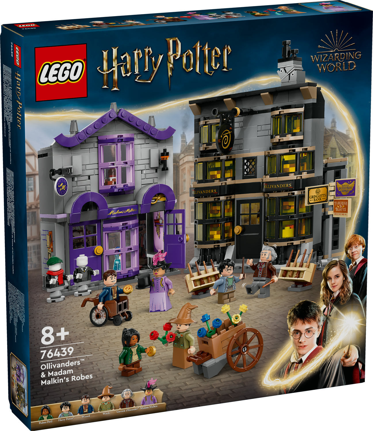 - 6 LEGO® Harry Potter™ minifigures, including Garrick Ollivander™ and Padma Patil