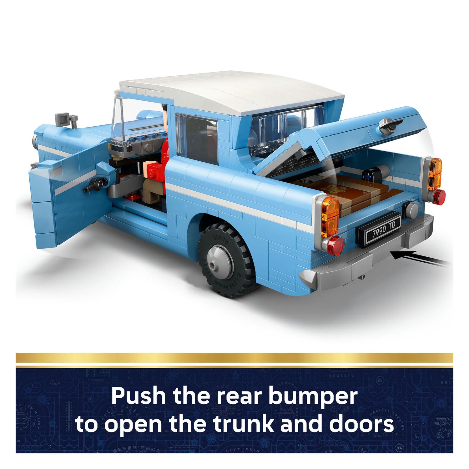 Build, display and play with the most detailed LEGO® brick model yet of the Flying Ford Anglia™. Recreate all the familiar features of the magical vehicle with a mind of its own. Place Harry Potter™, Ron Weasley™ and Hedwig™ in the car. Press the bumpers to make the trunk and doors open and eject luggage from the trunk, just like in Harry Potter and the Chamber of Secrets™!