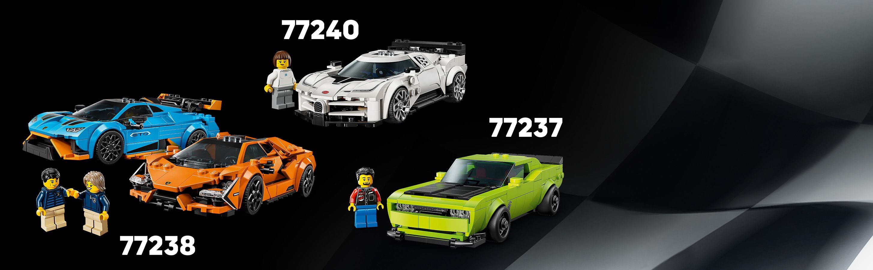 Kids can explore Lamborghini’s distinctive style, engineering and design with this double pack of LEGO® Speed Champions Lamborghini Revuelto & Huracán STO (77238) toy cars. This model kit with 2 LEGO race cars to build, display and play out stories with makes a great gift for boys and girls aged 10 and up and adult collectors.